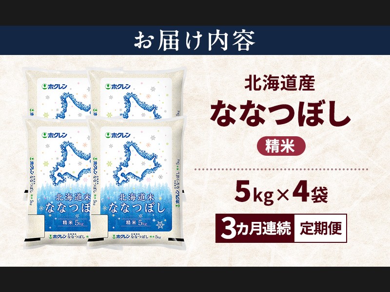 【3ヵ月連続定期便】北海道産 ななつぼし 精米 20kg 米 特A 獲得 白米 ごはん 定期便 定期配送 3ヵ月 道...