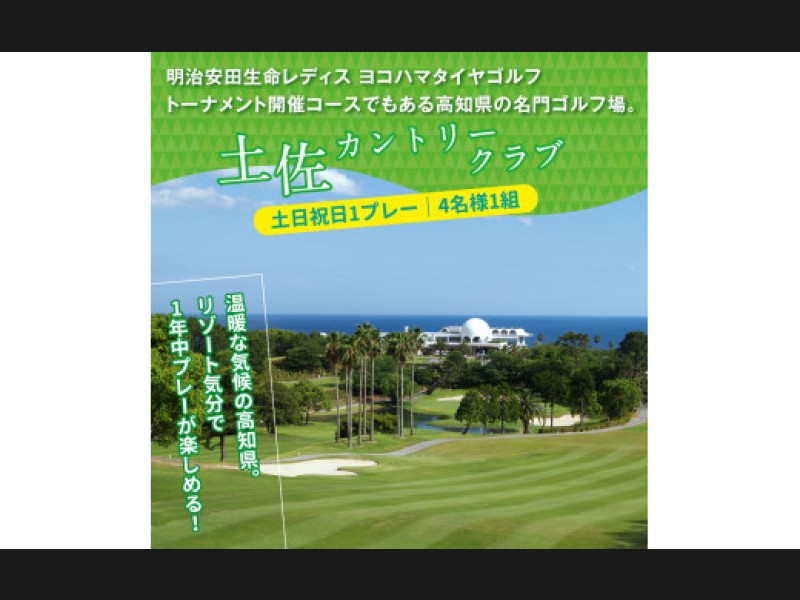 ○ゴルフ内容:明治安田生命レディス ヨコハマタイヤゴルフトーナメント開催コースである土佐カントリークラブ、名様/1組「セルフプレー」がセットになっております。