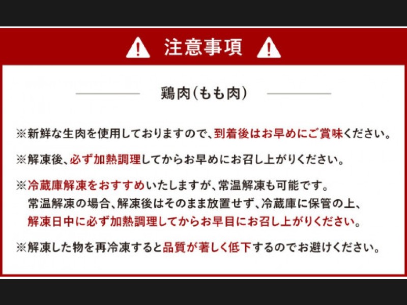 ・冷蔵庫解凍をおすすめいたしますが、常温解凍も可能です。常温解凍の場合、解凍後はそのまま放置せず、冷蔵庫に保管の上、解凍日中に必ず加熱調理してからお早目にお召し上がりください。