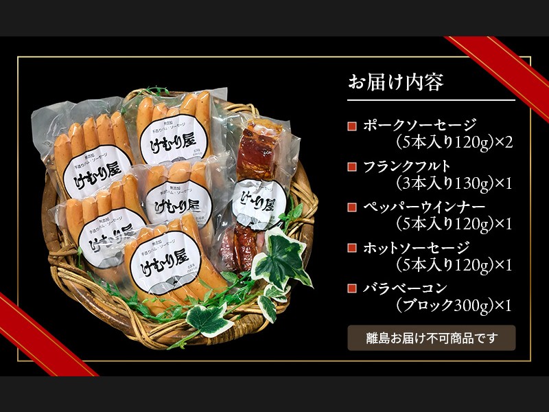 【新聞で紹介されました】 無添加 ソーセージ ベーコン セット けむり屋 詰め合わせ ポークソーセージ ...