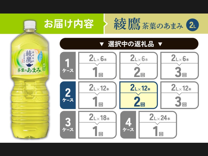 【2回定期便】綾鷹 茶葉のあまみ 2L PET【コカ・コーラ】ペットボトル 2ケース(12本)定期便 2回(24本)セ...