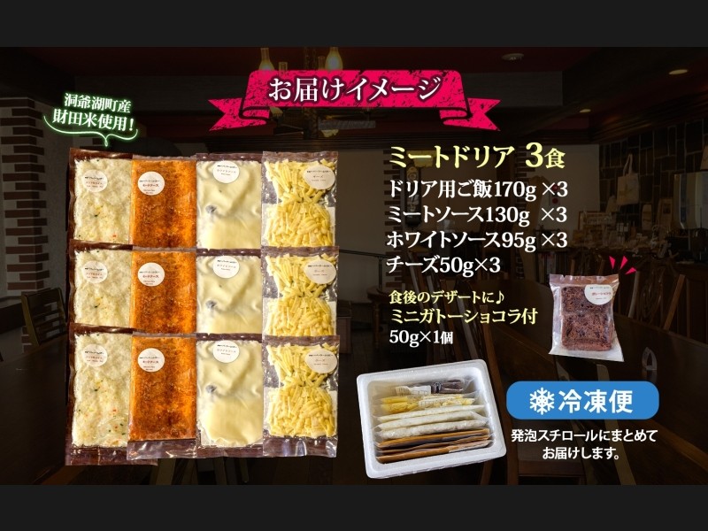 パーラーふくだ特製 ミートドリア3食 ミニガトーショコラ付 北海道 財田米 ミートソース トマト あいび...
