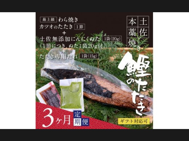 サイズ: 〈かつおのたたき×1節(鰹の大きさには個体差があり、1節約320g~360g以上)、有機無添加土佐にんにくぬた 20ml×1袋、たたきのタレ15ml×1袋、おろしニンニク2g×1袋〉×3か月