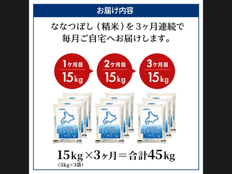 サイズ: ホクレン北海道ななつぼし精米15kg(5kg×3袋)を3ヵ月間お届けいたします