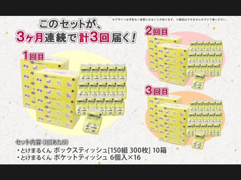 定期便 3カ月連続3回 北海道産 とけまるくん ボックスティッシュ 10箱 ポケットティッシュ 96個 セット ...