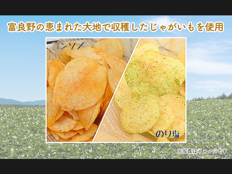 北海道富良野産じゃがいもを使用し、富良野管内の工場で生産したJAふらの特製のポテトチップスです。