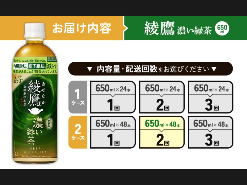 (2回定期便)綾鷹 濃い緑茶 650ml PET【コカ・コーラ】ペットボトル 2ケース(48本) 定期便 2回(96本) ...