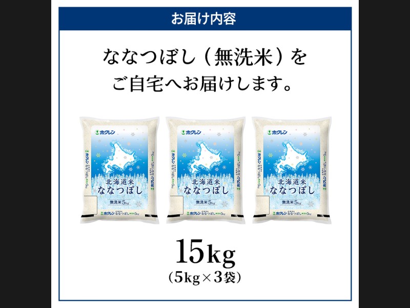 (無洗米)ホクレン北海道ななつぼし15kg(5kg×3袋)をお届けします。
