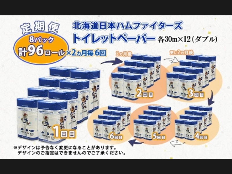 定期便 2ヵ月毎 全6回 北海道 日本ハムファイターズ トイレットペーパー ダブル 30m巻き 96ロール 日本...
