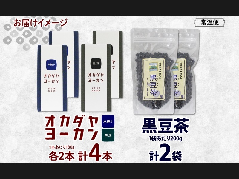 北海道 洞爺湖町 黒豆茶 2袋 ようかん 2種 計4本 セット お茶 北海道産 自家焙煎 オカダヤヨーカン 本練...
