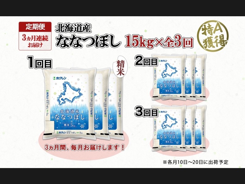 定期便 3ヵ月連続3回 北海道産 ななつぼし 精米 15kg 米 特A 白米 ごはん 道産米 ブランド米 15キロ 5kg...