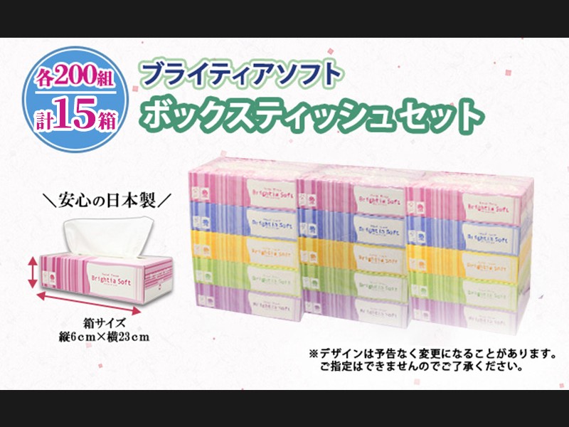 ブライティアソフト BOXティッシュ 各200組 計15箱セットを12ヵ月連続でお届けいたします!