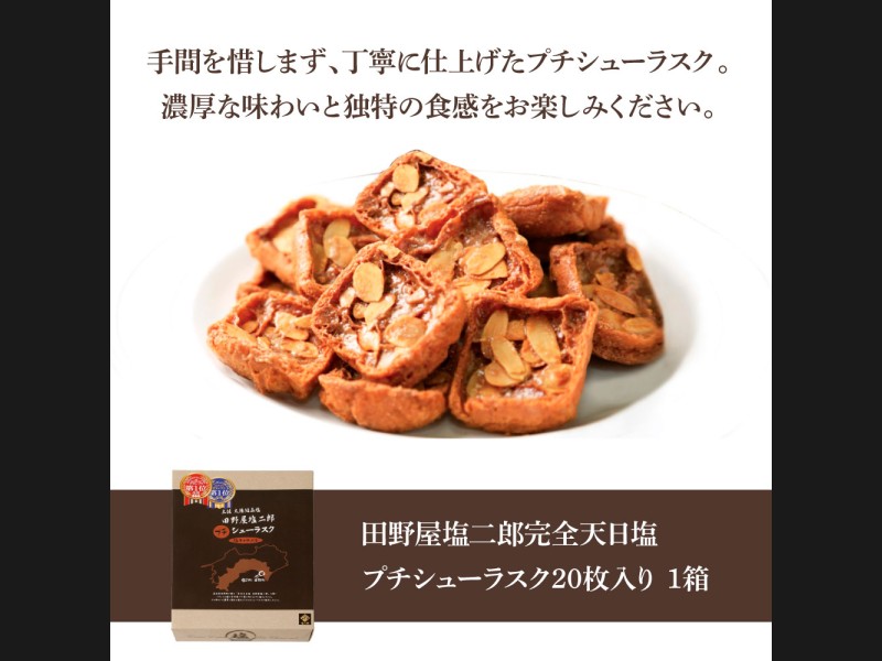 ★田野屋塩二郎完全天日塩★ プチシューラスク 20枚入り×1箱 田野屋塩二郎 天日塩 お菓子 洋菓子 焼き菓子...