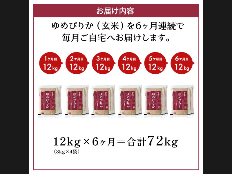 サイズ: ホクレンゆめぴりか玄米12kg(3kg×4袋)を6ヵ月間お届けいたします