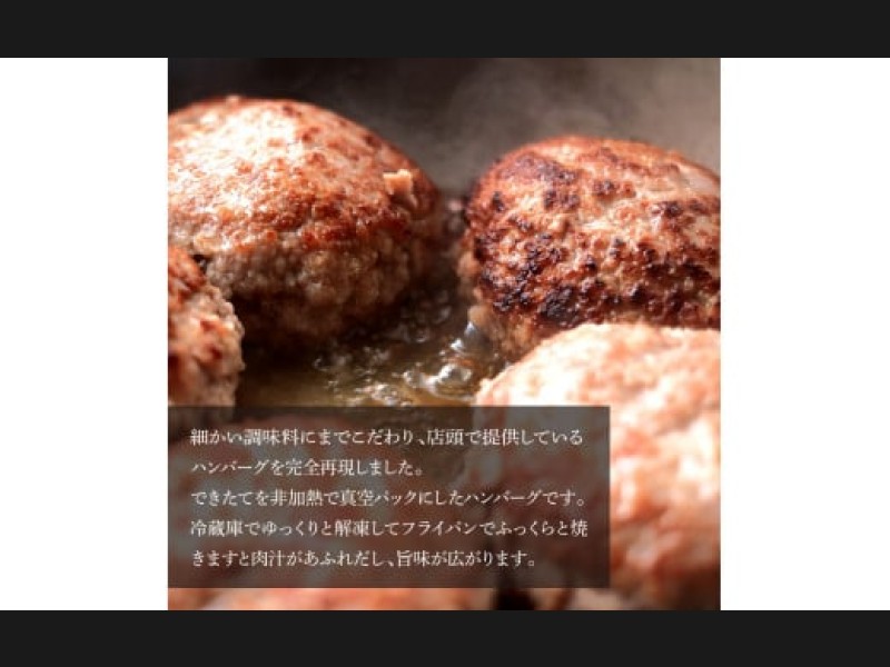 ゆっくりと冷蔵庫内で解凍をしていただき、フライパンで焼くとふっくらとした食感と旨味たっぷりのハンバーグができます。