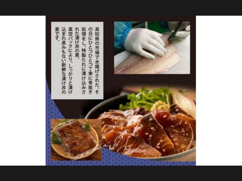 サイズ: かつおたたき1節180~300g、ブリ漬け丼80g×1P