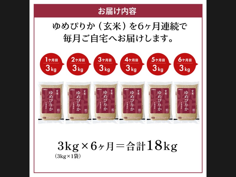 サイズ: ホクレンゆめぴりか玄米3kg(3kg×1袋)を6ヵ月間お届けいたします