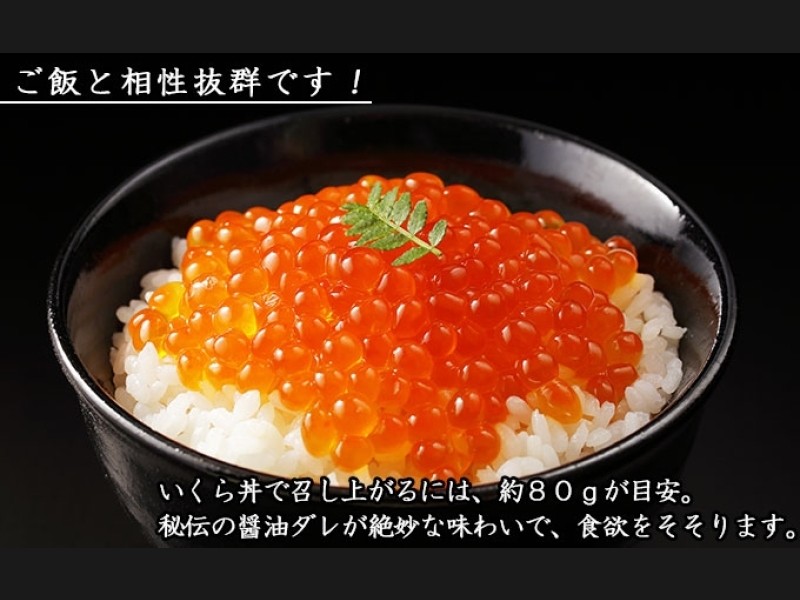 醤油ダレに漬け込んだイクラは、口に含んだ瞬間、プチっと弾ける口当たり。