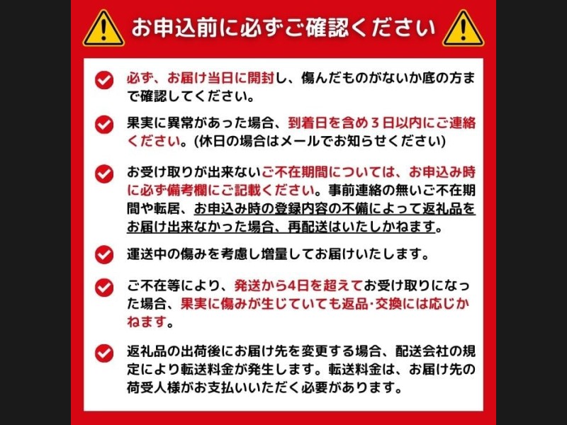 ※青果物のため発送の時期や期日指定は不可となっております。