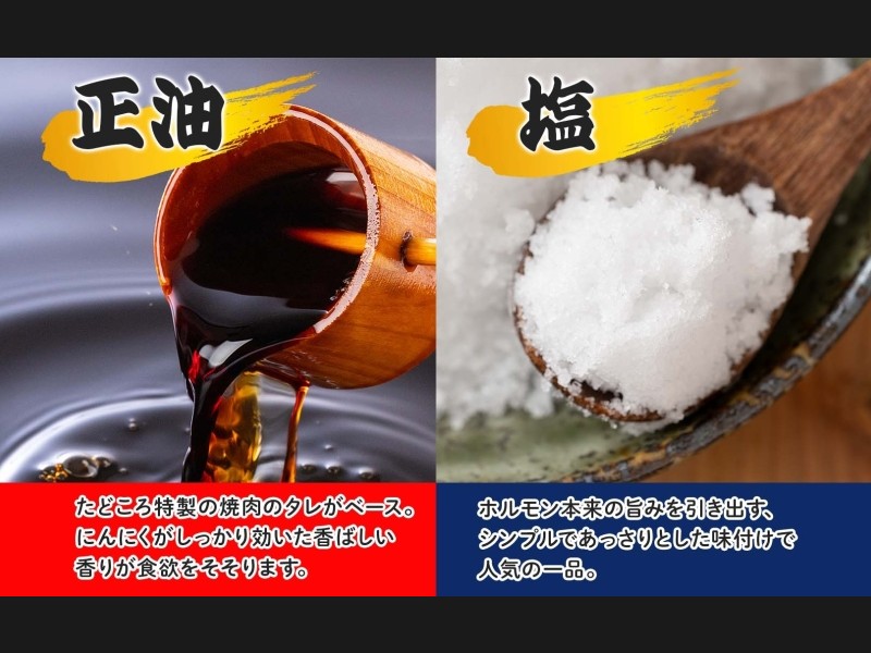 塩:ホルモン本来の旨みを活かした、シンプルであっさりとした味付けが好評。