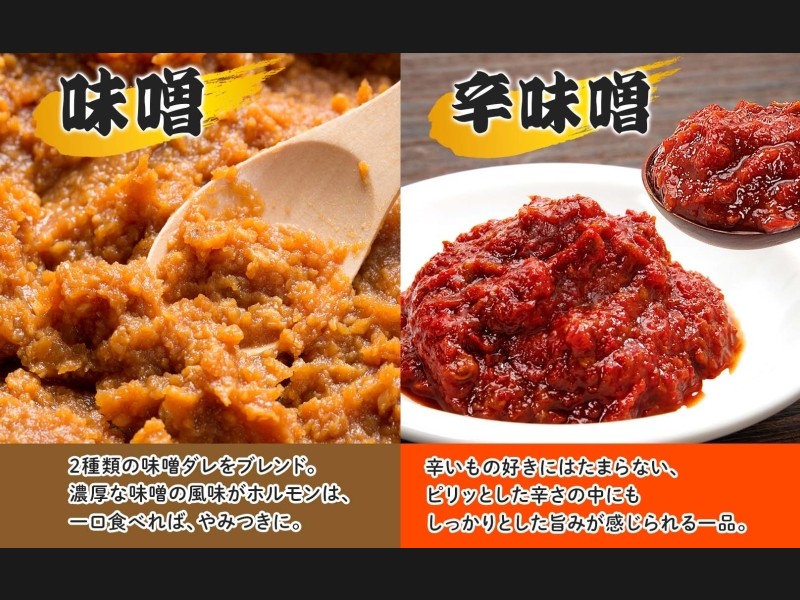 味噌:2種類の味噌ダレをブレンド。濃厚な味噌の風味がホルモンは、一口食べれば、やみつきに。