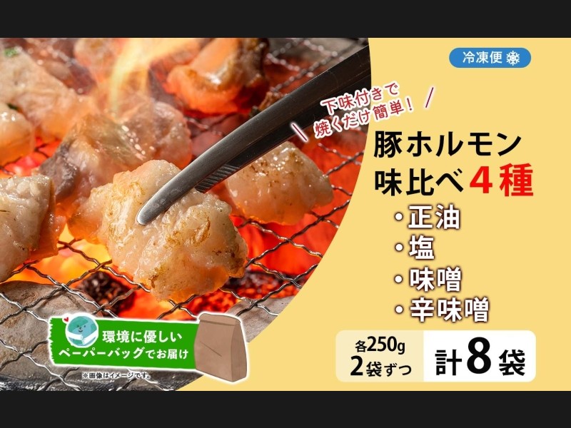 サイズ: 豚ホルモン4種(塩・辛味噌・正油・味噌)各250g×2パックずつ