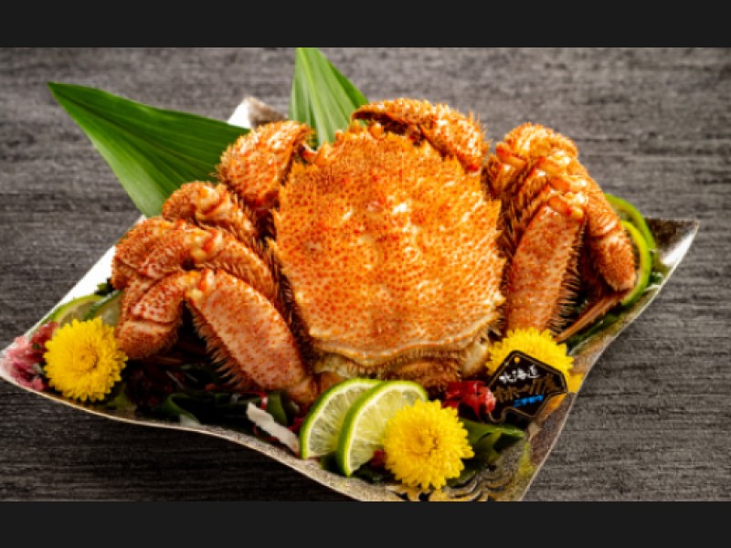 流氷がはぐくむ豊かな海で、毛ガニ・ズワイガニ・タラバガニの三大ガニのほか、ホタテ、鮭などの豊富な魚介類を味わえます。