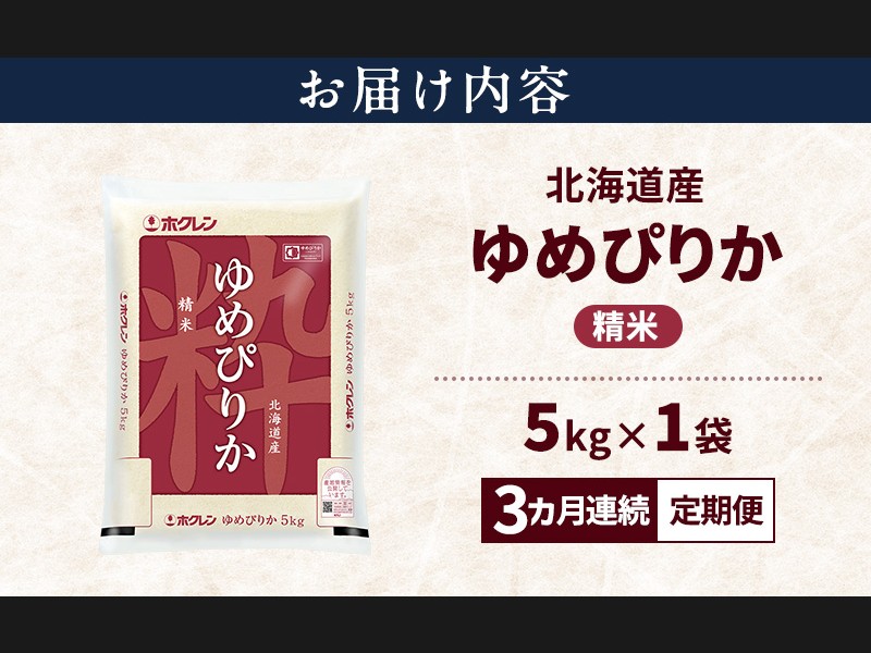 サイズ: ホクレン ゆめぴりか 精米 5kg(5kg×1袋)を3ヵ月連続で毎月10~20日にお届けします。