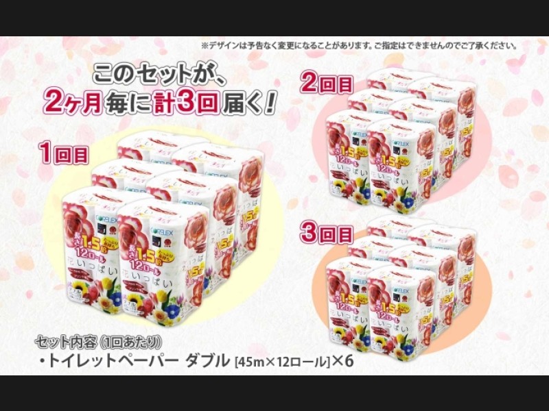 サイズ: 内容量:12ロール×6パック(計72ロール)を2ヵ月毎全3回お届け(合計216ロール)