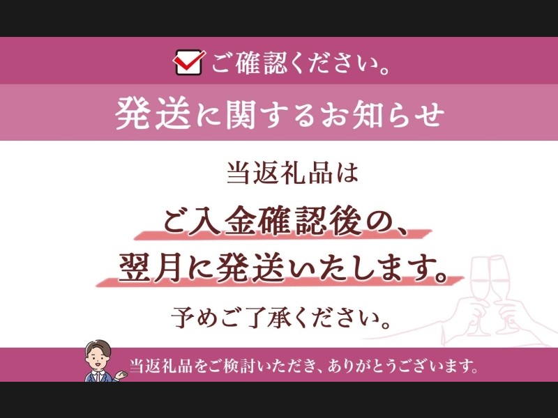 尚、長期不在等によりお礼の品をお受取りできなかった場合、再発送はできません。あらかじめご了承くださいませ。
