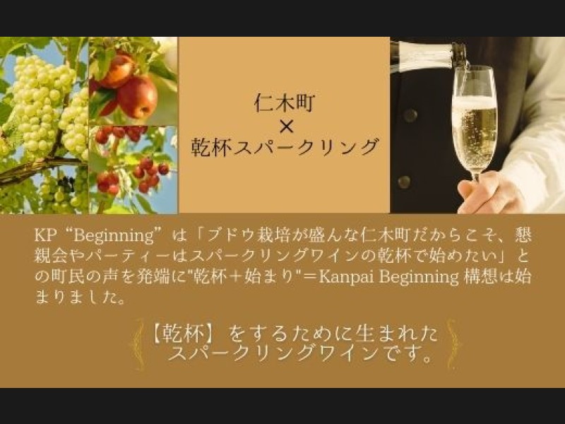 KP(KANPAIの頭文字)Beginning(ビギニング)は、「ブドウ栽培が盛んな仁木町だからこそ、懇親会やパーティーはスパークリングワインの乾杯で始めたい」という、町民の声を発端に構想がスタート。