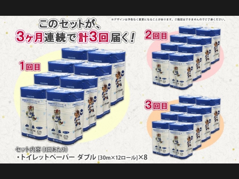 定期便 3ヵ月 連続3回 北海道 日本ハムファイターズ トイレットペーパー ダブル 30m巻き 96ロール 日本...