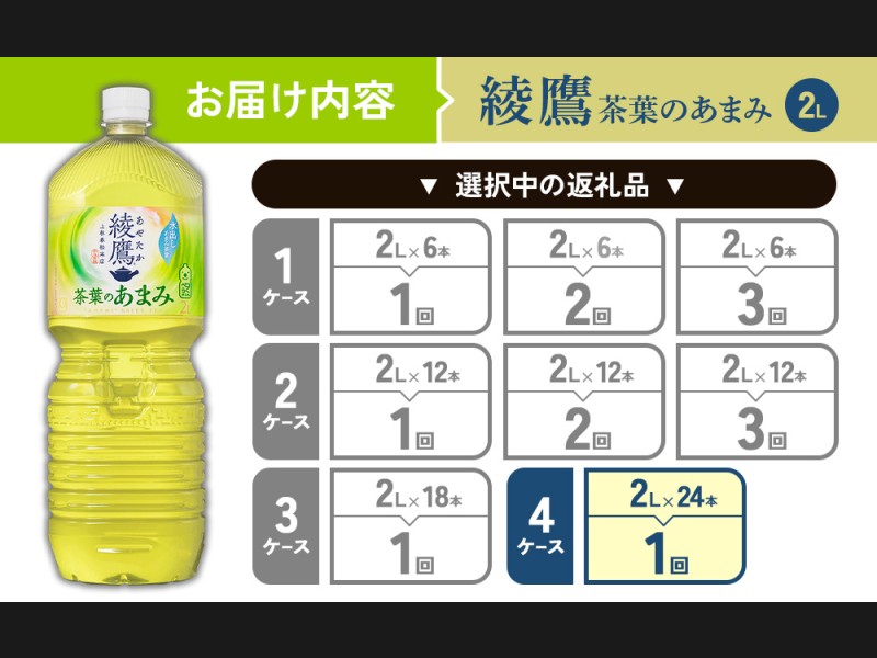 綾鷹 茶葉のあまみ 2L PET【コカ・コーラ】ペットボトル 4ケース(24本) セット お茶 緑茶 日本茶 茶葉 ...