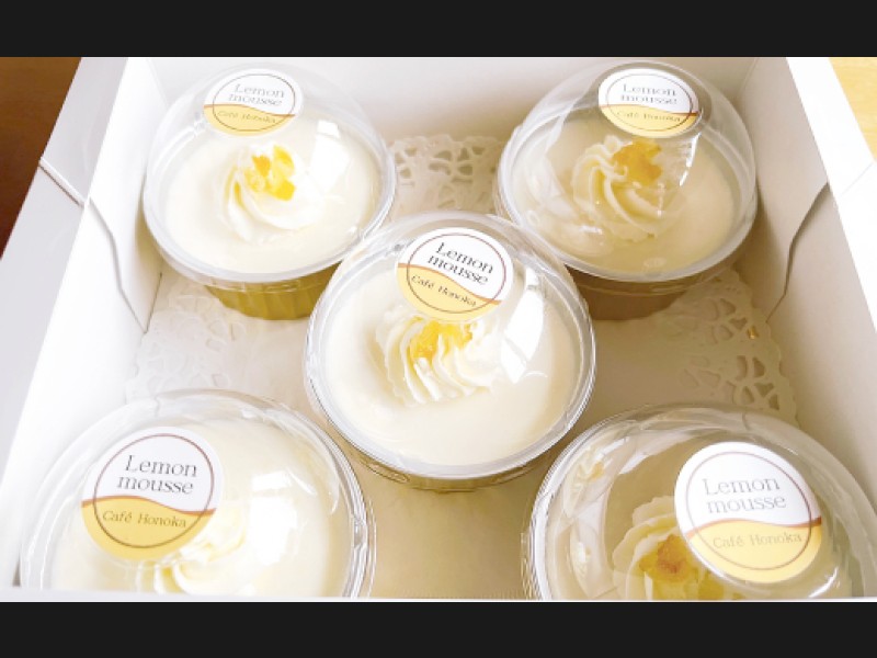 解凍後すぐに召し上がれるように、生クリームを添えたカップタイプをご用意しました。レモン1個をまるごとしぼった果汁と大自然で収穫された天然ハチミツを贅沢に使った、Cafe ほの香人気の甘酸っぱいムースです。