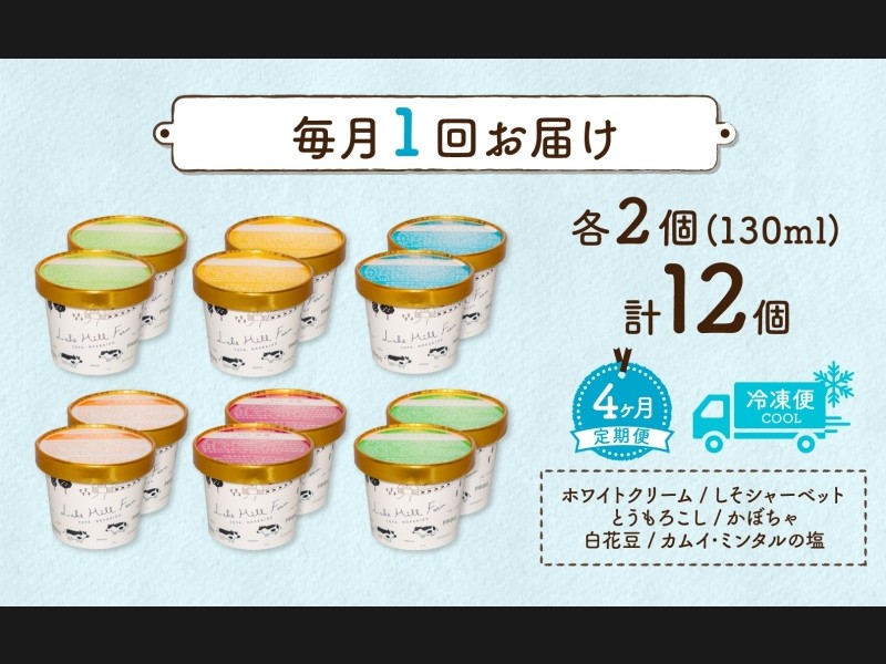 定期便 4ヵ月 連続 全4回 北海道 まきばのジェラート 6種 各2個 計12個 セット ジェラート ミルク 赤し...