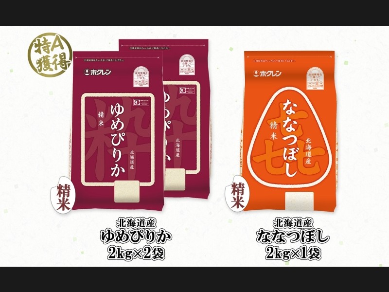 ゆめぴりか(2kg×2袋)、喜ななつぼし(2kg×1袋)、計6kgのセットです。