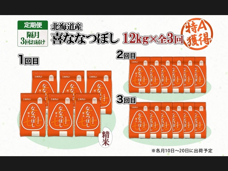 定期便 隔月3回 北海道産 喜ななつぼし 精米 2kg×6袋 計12kg 米 特A 白米 小分け お取り寄せ ななつぼし...