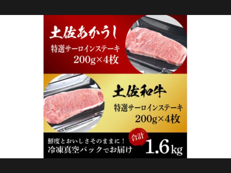 土佐あかうし&土佐和牛2種食べ比べ(200g×8枚)1.6キロ 1.6kg 特選サーロインステーキ サーロイン 特選...