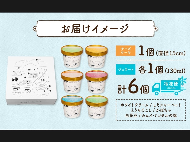 濃厚な味わいのチーズケーキと、ナチュラルな味わいの6種のジェラートをセットにしました。