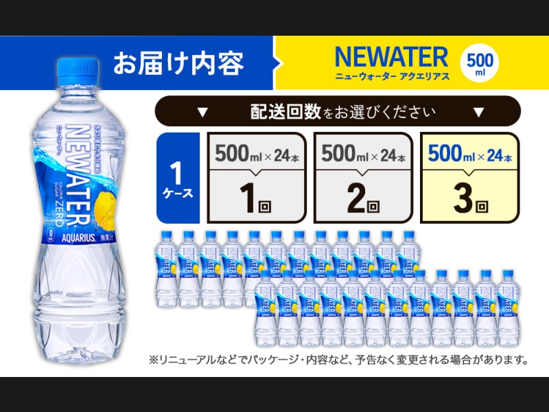【3回定期便】アクエリアス ニューウォーター 500ml PET【コカ・コーラ】ペットボトル 1ケース(24本) 定...