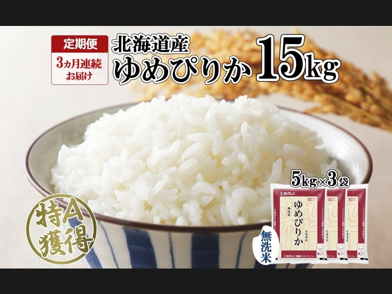 定期便 3ヵ月連続3回 北海道産 ゆめぴりか 無洗米 15kg 米 特A 獲得 白米 ごはん 道産 15キロ 5kg ×3袋 ...