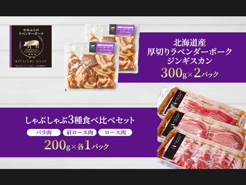 【北一ミート】かみふらの ラベンダーポーク☆デリシャスセット [しゃぶしゃぶ 3種&ジンギスカン]計1.2k...