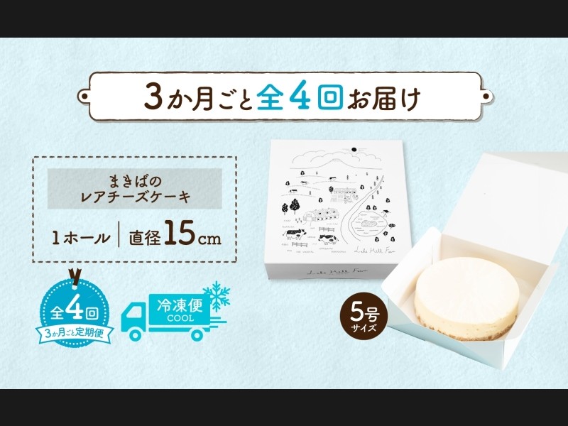 「まきばのレアチーズケーキ」1個(1ホ—ル)を、3ヵ月毎全4回お届けします。