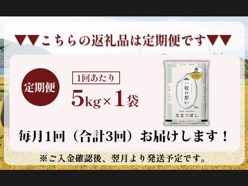 【先行受付 2025年産米】3ヵ月 定期便 銀山米研究会のお米<ななつぼし>5kg×1袋 ご飯 ライス 白米 和...