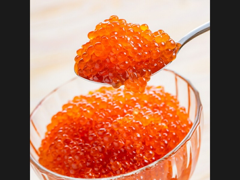 ミネラルとプランクトンを多く含む冷たく広大なロシア海域で漁獲されたカラフト鱒の卵を素早く取り出し紋別の衛生的な工場で丁寧にほぐし、自社製の特製醤油タレに漬け込みました。