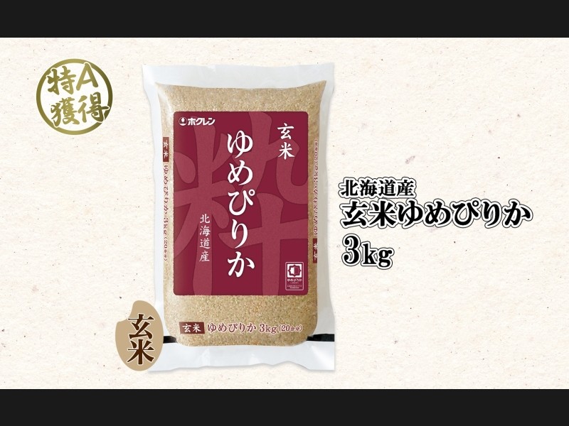 北海道産 ゆめぴりか 玄米 3kg 米 特A 獲得 お取り寄せ ごはん 道産米 ブランド米 3キロ お米 ご飯 便利...