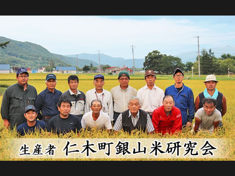 北海道随一の清流を誇る余市川を湛え、盆地特有の肥沃な土壌に恵まれる一方で、日照時間が短いことから米作作りには厳しいといわれる仁木町銀山地区で、美味しいお米を作るべく米栽培の研究に熱心な生産者が「銀山米研究会」を結成。わが子のように大切に育てたお米です。