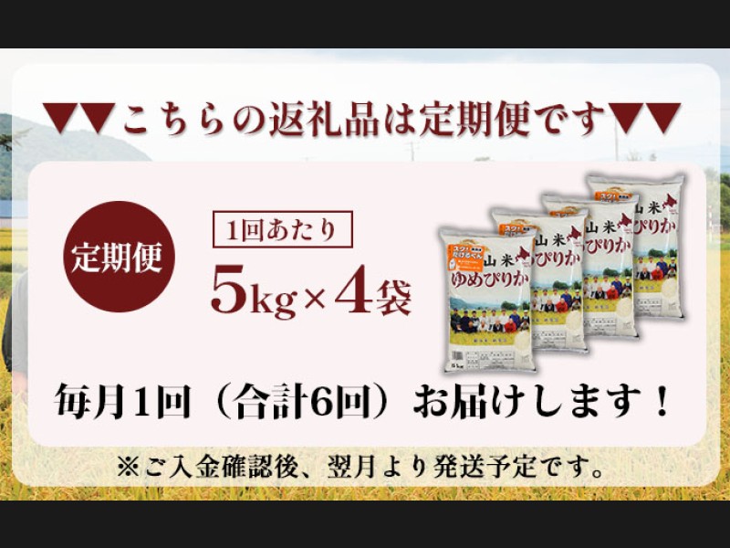 6ヵ月 定期便 銀山米研究会の無洗米<ゆめぴりか>20kg(5kg×4袋)【機内食に採用】 ライス 白米 精米 ...