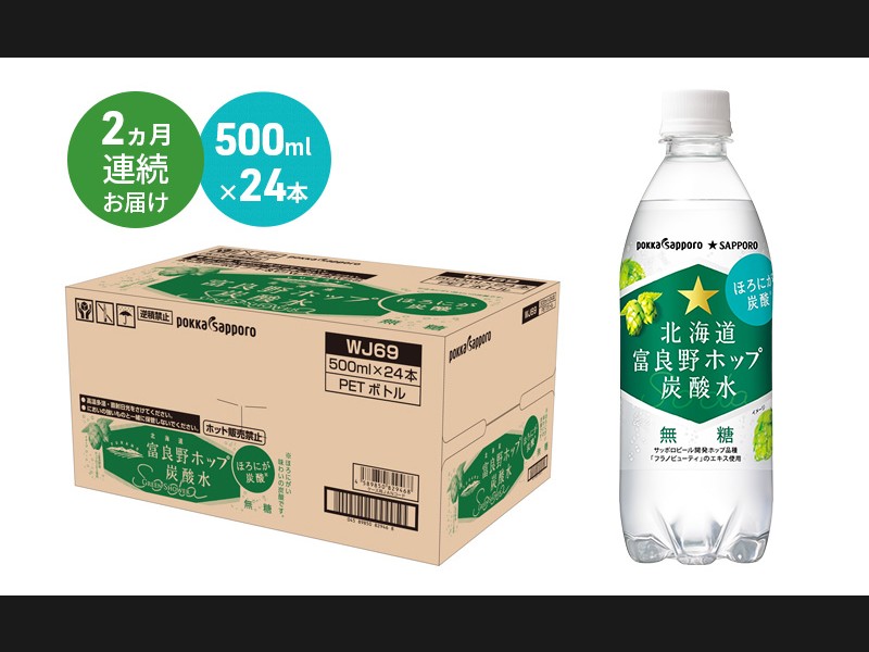 北海道 定期便 2ヵ月 連続 全2回 炭酸水 500ml × 24本 北海道富良野ホップ炭酸水 ポッカサッポロ 無糖 ...