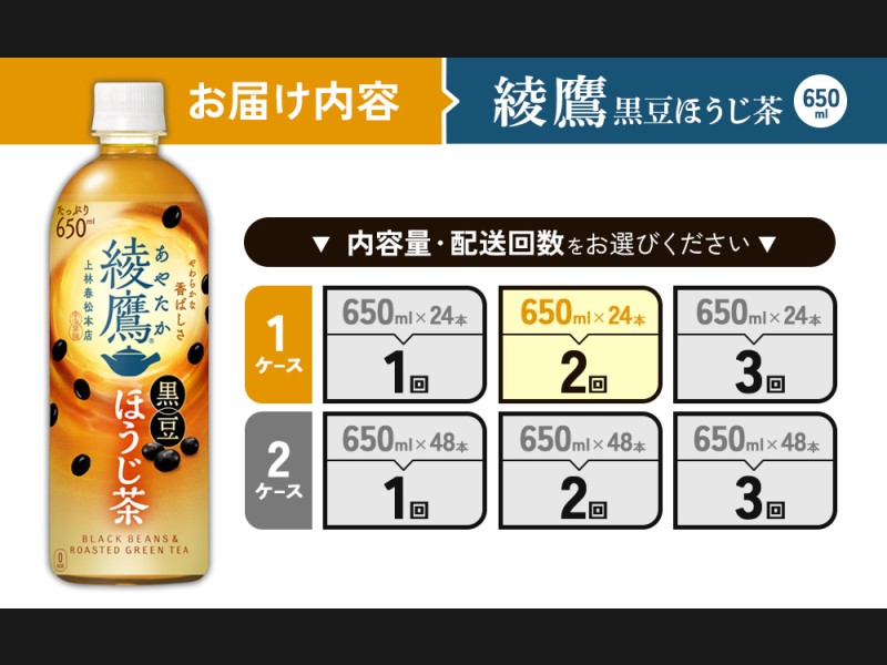 (2回定期便)綾鷹 黒豆ほうじ茶 650ml PET【コカ・コーラ】ペットボトル 1ケース(24本) 定期便 2回(48...